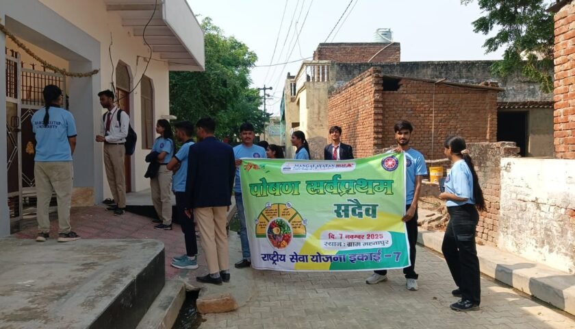 मंगलायतन विश्वविद्यालय में मेरी माटी मेरा देश अभियान के तहत शुक्रवार को रंगोली प्रतियोगिता का आयोजन किया गया। कार्यक्रम एनएसएस के तत्वावधान में शिप्रा सभागार में हुआ। प्रतियोगिता में 12 समूहों ने प्रतिभाग कर अपनी रचनात्मक कौशल का प्रदर्शन कर आकर्षक रंगोलियां बनाई। छात्र-छात्राओं ने रंगों के माध्यम से मन के भावों को उकेर कर देशवासियों को देश प्रेम का संदेश दिया।