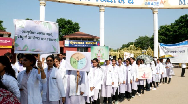 आयुर्वेद दिवस पर विद्यार्थियों ने निकाली जागरूकता रैली