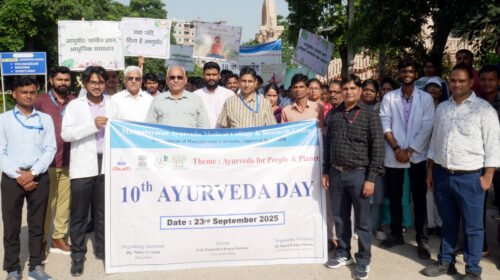 मंगलायतन आयुर्वेद मेडिकल कॉलेज एंड रिसर्च सेंटर ने 10वें आयुर्वेद दिवस के अवसर पर ‘आयुर्वेद जन-जन के लिए, पृथ्वी कल्याण के लिए’ थीम पर जागरूकता रैली का आयोजन किया। इस रैली का मुख्य उद्देश्य आम जनमानस को आयुर्वेद के महत्व के प्रति जागरूक करना और उन्हें दैनिक जीवन में आयुर्वेदिक दिनचर्या अपनाने के लिए प्रेरित करना था।