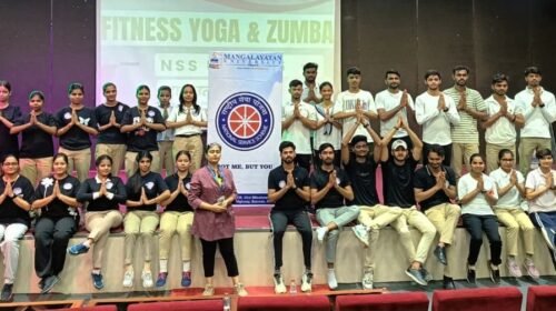 मंगलायतन विश्वविद्यालय में दान उत्सव 2025 के अंतर्गत गुरुवार को आयोजित योग एवं जुम्बा कार्यक्रम ने विद्यार्थियों में ऊर्जा, स्वास्थ्य और सकारात्मक सोच का संचार किया। यह आयोजन राष्ट्रीय सेवा योजना (एनएसएस) की इकाई छह व योगा क्लब के संयुक्त तत्वावधान में संपन्न हुआ। जिसमें स्वयंसेवकों व छात्र-छात्राओं ने भाग लिया।