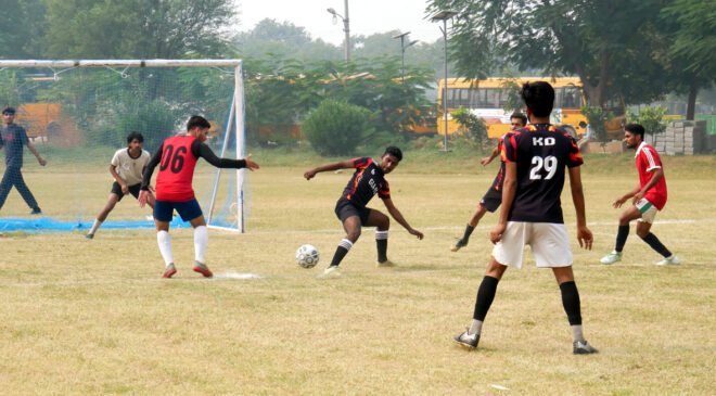खेल अधिकारी डा. भारतेंदु चौहान ने बताया कि पहले मैच में मंगलायतन विश्वविद्यालय की ‘बी’ टीम और एएमयू के बीच मुकाबला हुआ, जिसमें एएमयू ने जीत दर्ज की। दूसरे मैच में जीएलए टीम ‘ए’ ने शारदा विश्वविद्यालय को हराया। तीसरे मैच में जीएलए ‘बी’ और एएमयू के बीच हुए मुकाबले में एएमयू विजेता रही। चौथे मैच में मंगलायतन टीम ‘ए’ ने संस्कृति विश्वविद्यालय को पराजित किया। फाइनल मुकाबला शुक्रवार को आयोजित होगा। निर्णायक की भूमिका मौ. अब्दुल्ला शमसी, मौ. अब्दुल्ला खान और शुभम शर्मा ने निभाई। इस अवसर पर प्रो. रविकांत, प्रो. दिनेश पांडेय, प्रो. आरके शर्मा, प्रो. किशनपाल सिंह, प्रो. राजेश उपाध्याय, प्रो. अनुराग शाक्य, डा. पूनम रानी और प्रो. मनीषा शर्मा आदि उपस्थित रहे। संचालन एंजेला फातिमा ने किया।